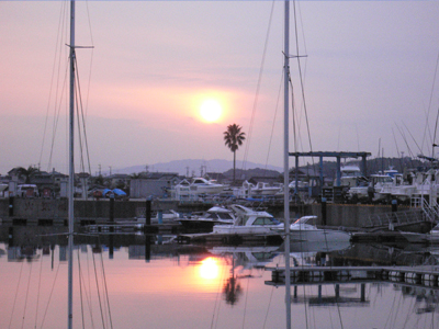 左の写真(07:00頃)にマリーナを出港し、
