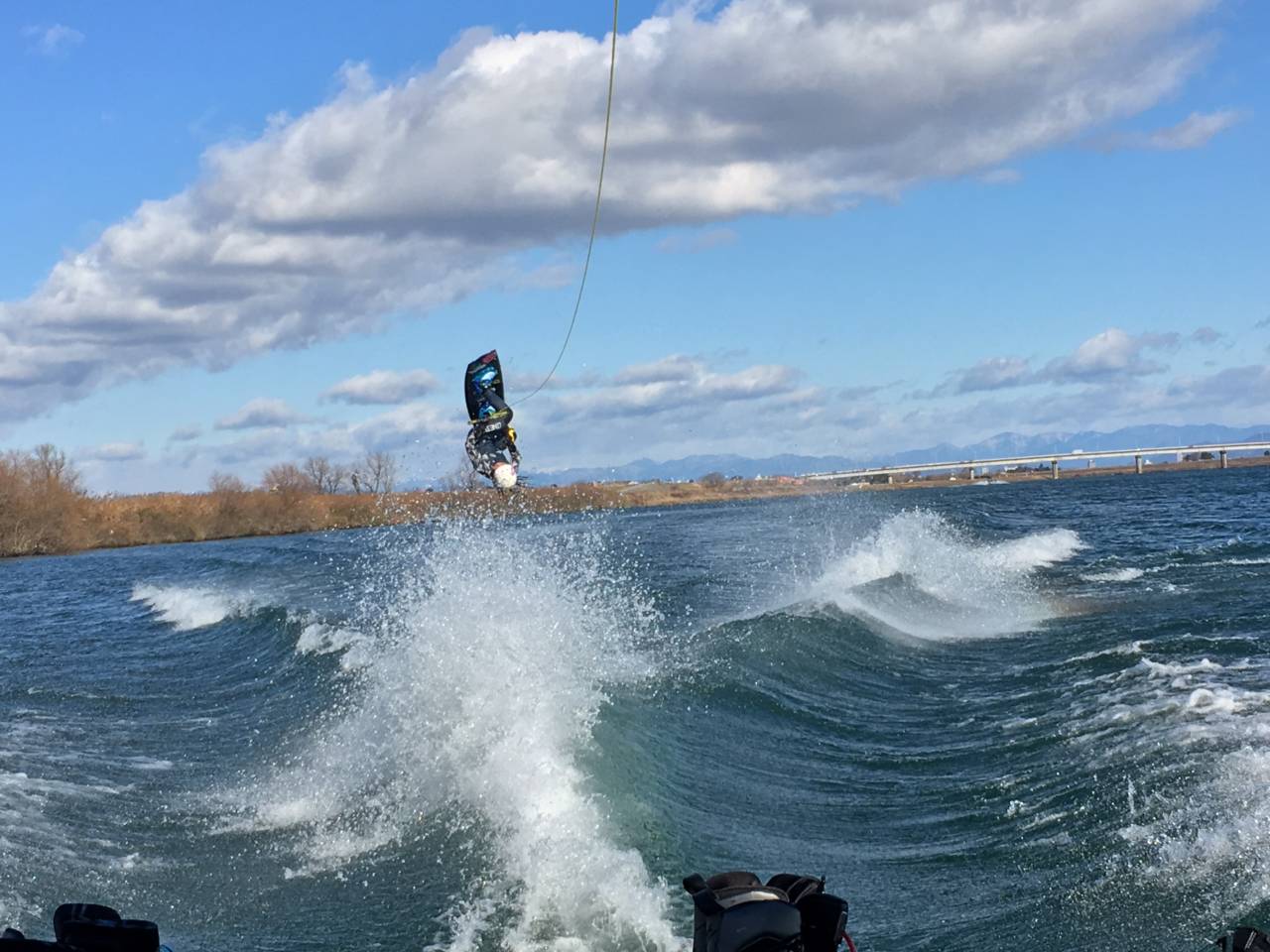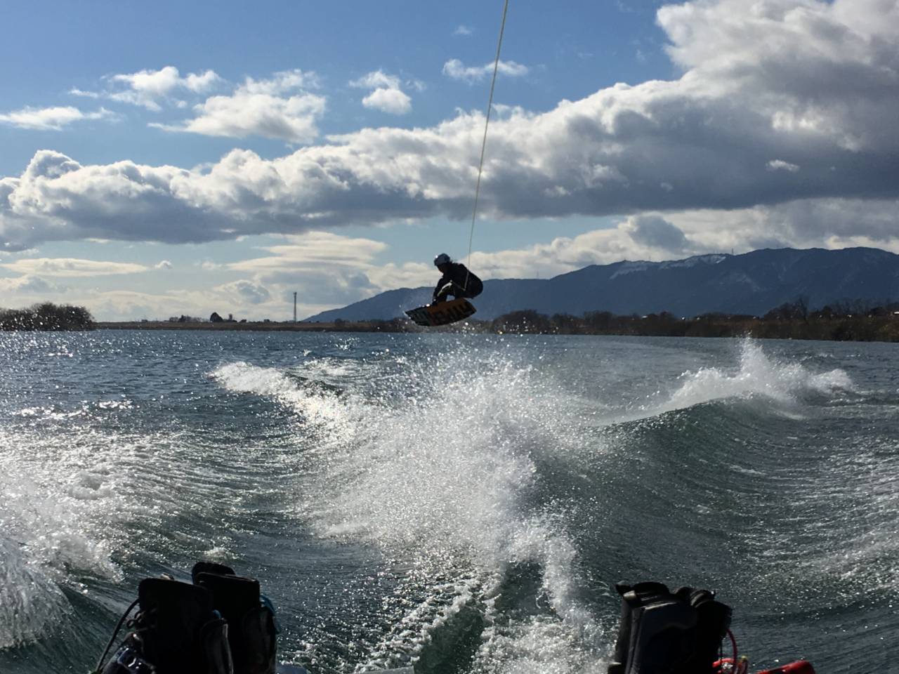 初滑りは北風がちょっと強く、コンディションは今一つ。